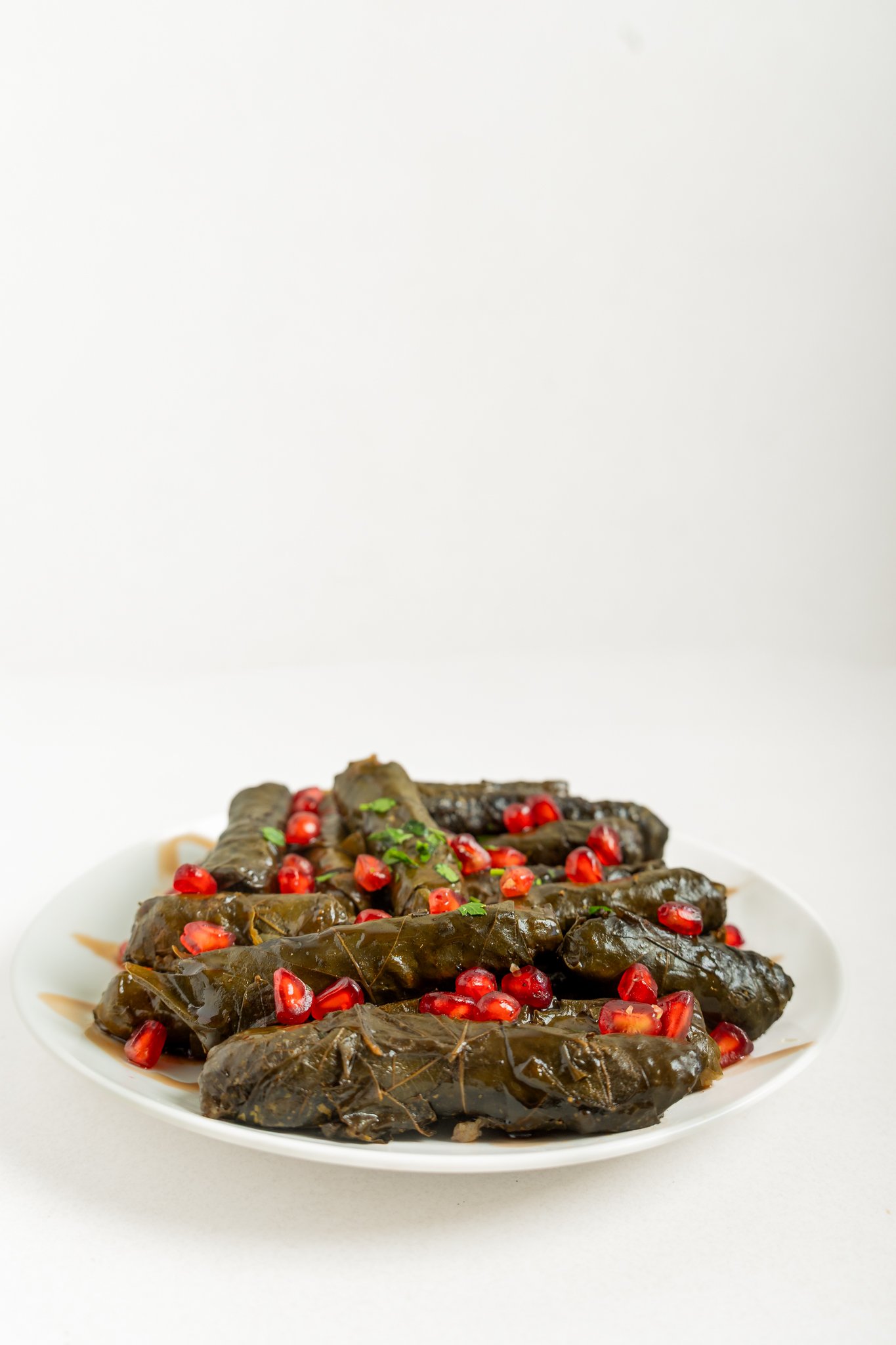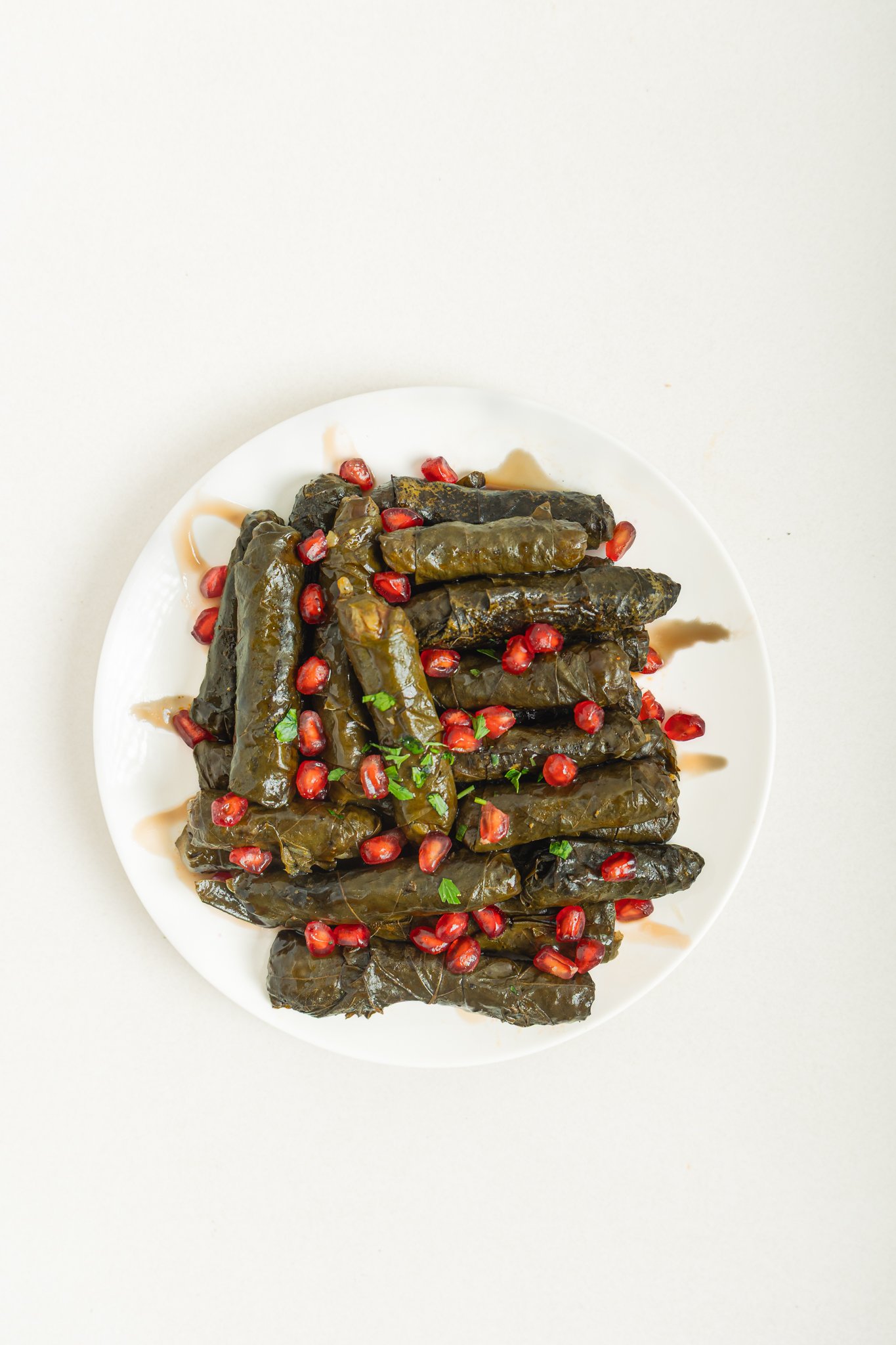 עלי גפן רכים וטריים עוטפים מילוי אורז לבן מתובל בעדינות, מגולגלים בקפידה לביסים מושלמים