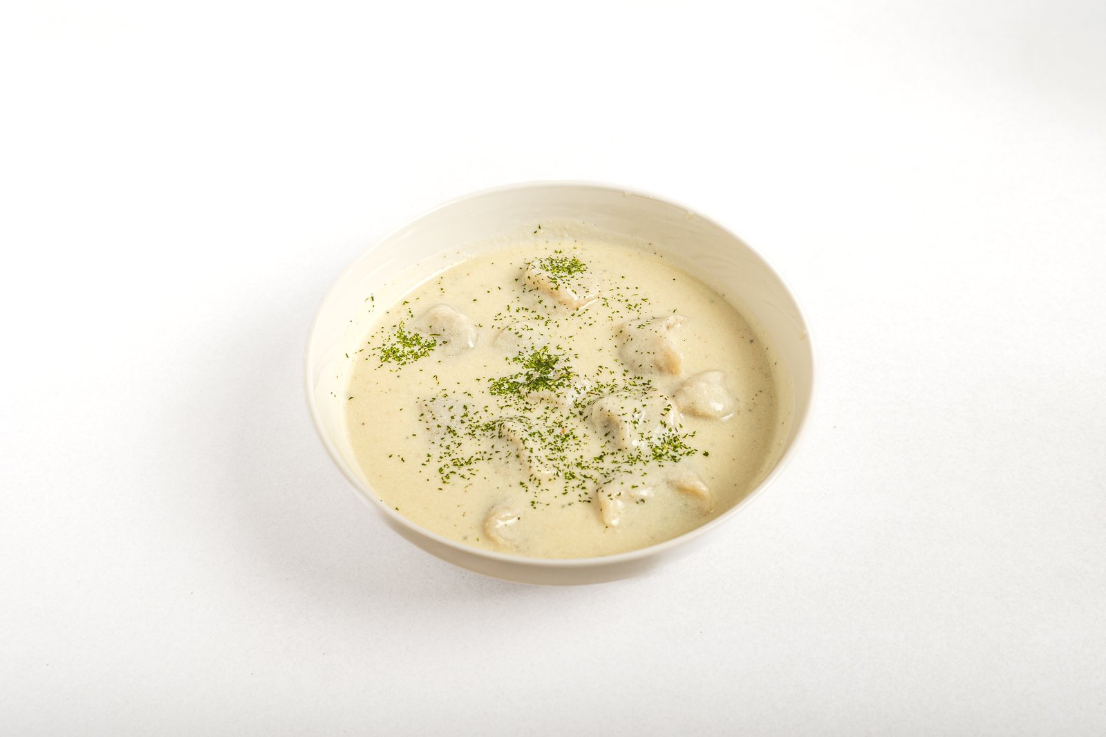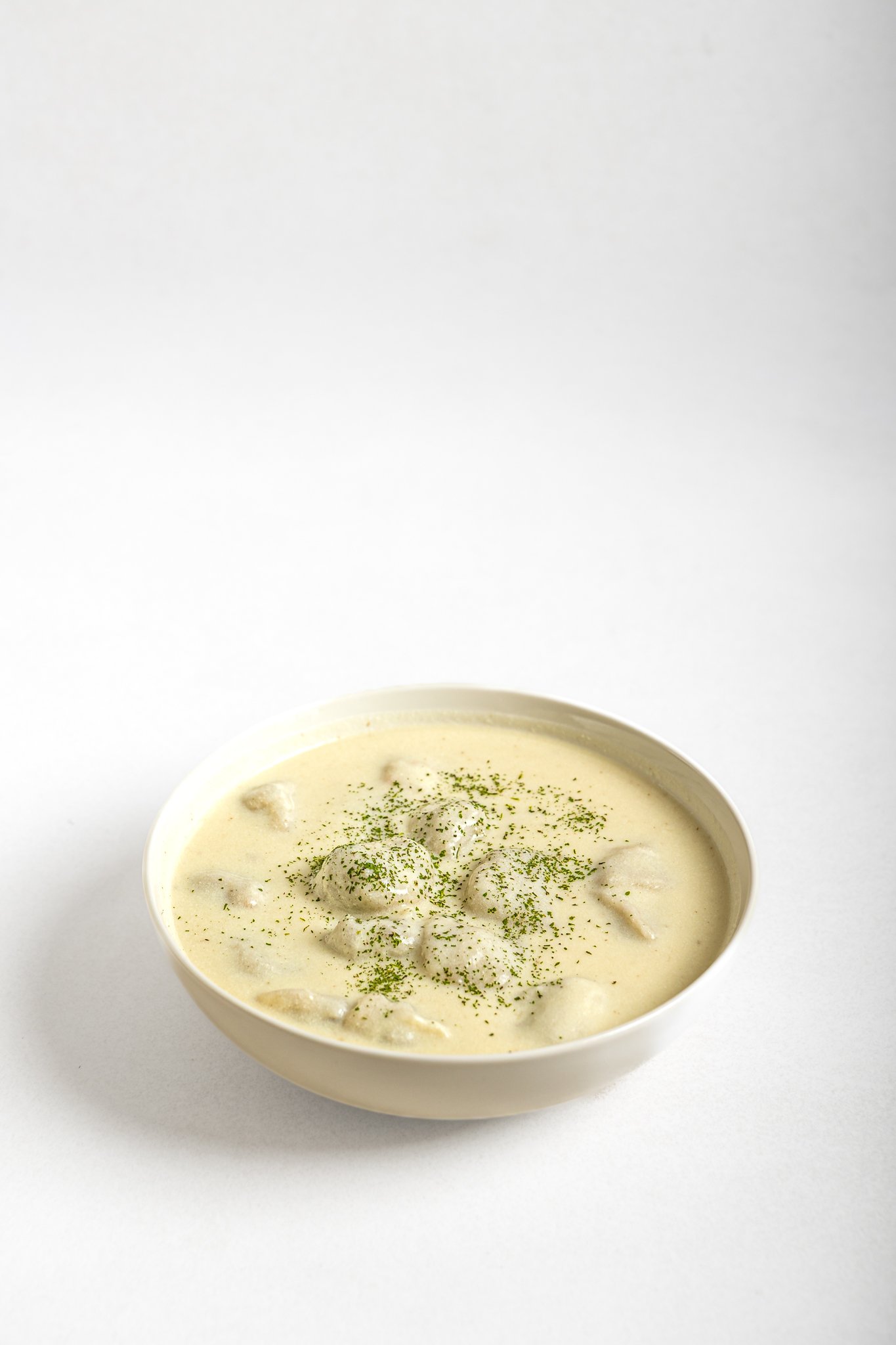 בצק רך במילוי בשר בקר/טלה טחון ובצל מתובל, מבושל לרכות ברוטב יוגורט שום עשיר